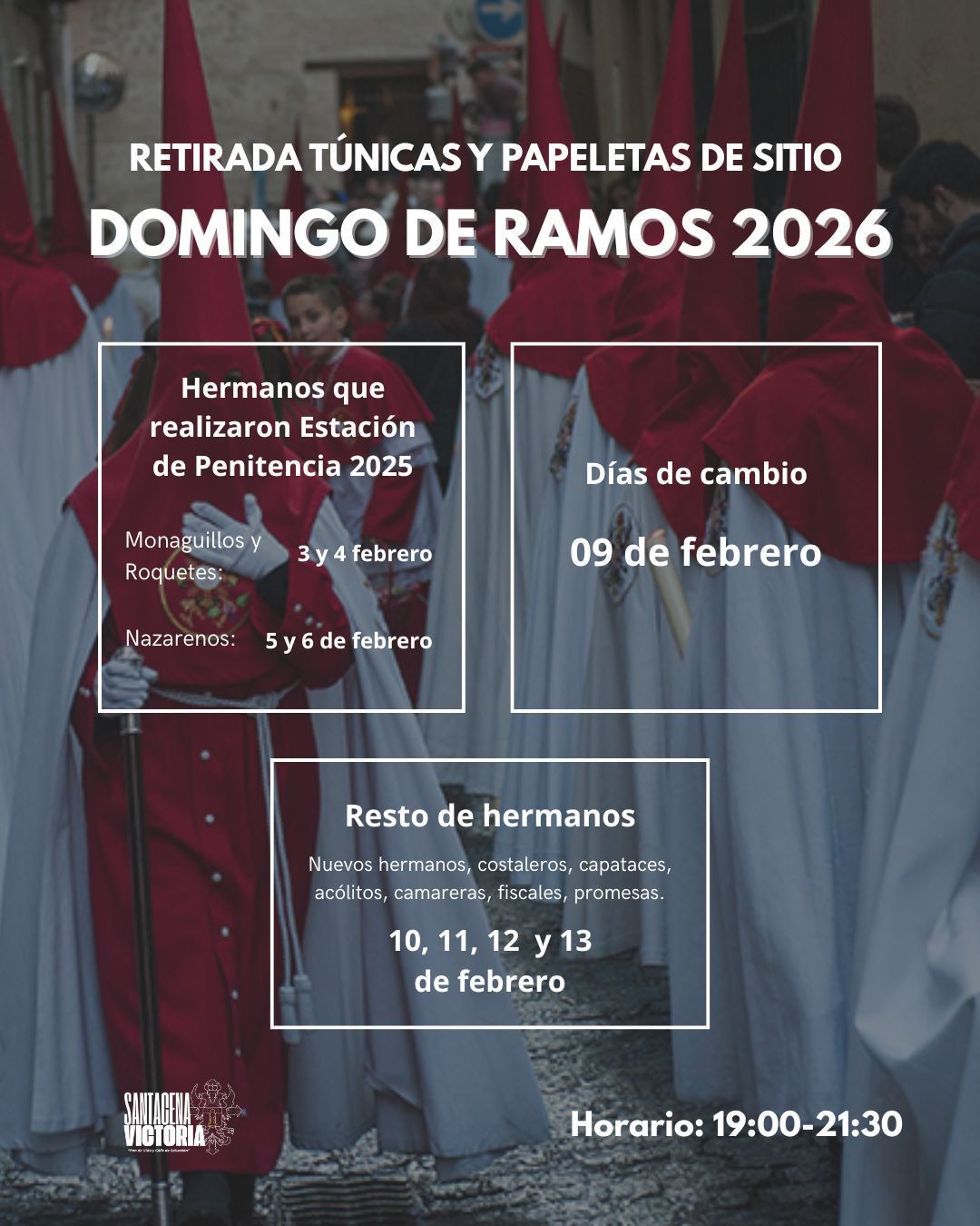 Estimados hermanos, Informamos de las fechas de retirada de túnicas y tarjetas de sitio, que en este año serán los…